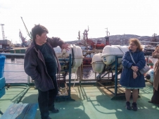 Экскурсию для классных руководителей провели заместитель директора по науке ММБИ РАН, председатель Мурманского областного отделения Русского географического общества к.г.н. Денис Моисеев и члены команды Дальних Зеленцов – капитан судна Н.И. Морозов, третий помощник капитана Ю.Ф. Ротарь, матрос Л.И. Грицуник. Педагогов ознакомили с бытом экипажа судна, рассказали, как работают средства спасения на воде, показали место их размещения на палубе. Также экскурсанты узнали, как организовано взаимодействие членов команды во время плавания и как между ними распределены обязанности. Денис Моисеев рассказал гостям Дальних Зеленцов, какие специалисты работают на судне, объяснил устройство помещений, в которых организуется научно-исследовательская работа в ходе научных рейсов.