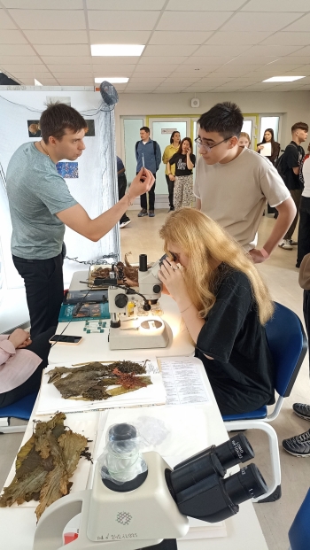 At the MMBI career guidance station, led by research scientists Alyona Noskovich, Oleg Bondarev, Dmitry Pugovkin, and Dmitry Salakhov, young northerners could examine under a microscope and touch samples of Arctic algae, benthos, and fish. The anglerfish was, as always, irresistible and very popular with both children and adults. We hope that the scientific mysteries of our northern seas deapths genuinely interested the forum visitors, and we will one day see them among our young colleagues!