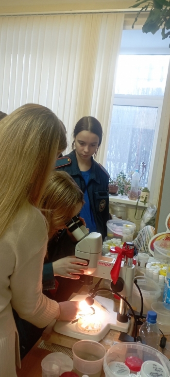 On February 10, MMBI RAS researches held a scientific and educational event "Environmental Monitoring" for 8th-graders of School No. 44. The eighth-graders are EMERCOM cadets, future rescue workers. Representatives of the Institute's laboratories introduced the children to the basics of their work and demonstrated scientific equipment. Anastasia Vashchenko spoke about marine plankton and methods of its research, Svetlana Kolbeeva spoke about the marine forests of the Arctic (macroalgae), Anastasia Gurba spoke about bird counts, Pavel Vashchenko explained why biologists need drones, Oleg Bondarev spoke about ichthyology as a science, and Alyona Noskovich spoke about the study of the seabed.